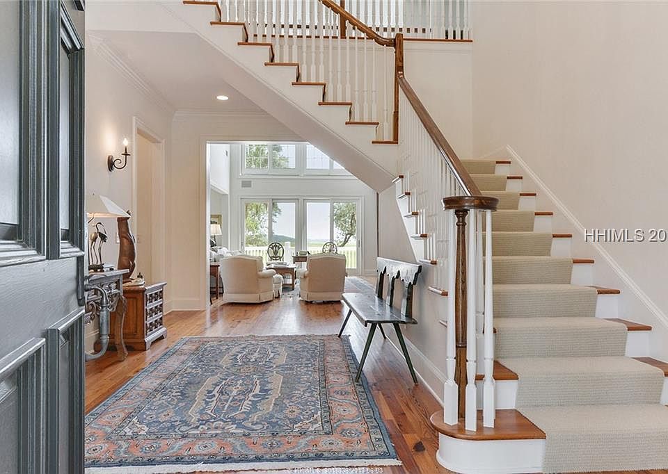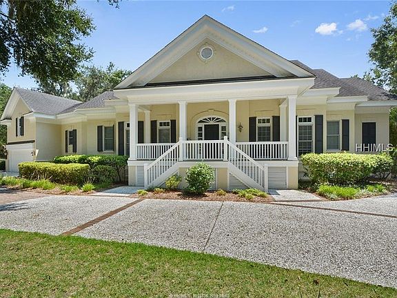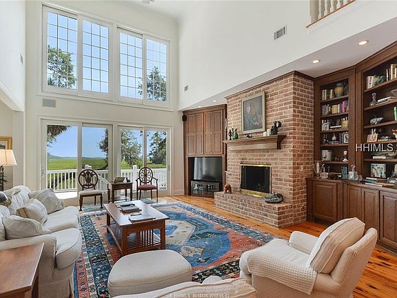 This beautiful Colleton River home goes on and on with 4 bedrooms and 5 1/2 baths. Hardwood floors, brick fireplace in the living room, office, white kitchen cabinets, breakfast area, granite & stainless steel appliances. Wet bar, sun room, great room is a wall of windows with beautiful marsh views. Situated on a peninsula with fenced in back yard and upper & lower deck. Very private .60 acre home site at the end of Stoney Park Lane. The long marsh views are just spectacular! 2019 Association fee is $19,800.