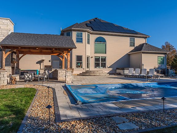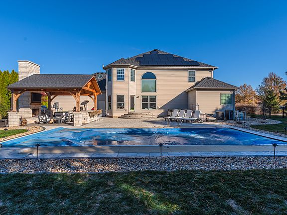 Lovely home on prime cul-de-sac street, in desirable Hawthorne II Subdivision. Beautifully updated, light and bright. Functional floor plan with 6 bedrooms, and 4.5 bathrooms. Two story foyer and great room, open eat-in kitchen, elegant dining room and living room. Main level primary suite with enormous walk in closet, and spa bathroom. 5 large bedrooms on the 2nd level, and 2 full bathrooms. Full partially finished basement with spacious lower level family room, bar, exercise room and 4th full bathroom. Large over sized private corner lot with a salt water in-ground swimming pool and the most perfect, custom, covered outdoor living space- designed and installed by Kaisner Landscaping. Custom paver patio, with built in grilling station (natural gas Napoleon grill), and a wood/gas combination outdoor fireplace. Recent updates include but not limited to: New roof with solar panels 2020, custom patio and covered outdoor kitchen and living space 2021, irrigation system 2020, newer fireplace surround, EV hook up in the garage, freshly painted throughout, kitchen overhead and under cabinet lighting, newer kitchen backsplash, and so much more. Easy access to Constitution Trail and Hawthorn II lake. *Information deemed reliable but not guaranteed*