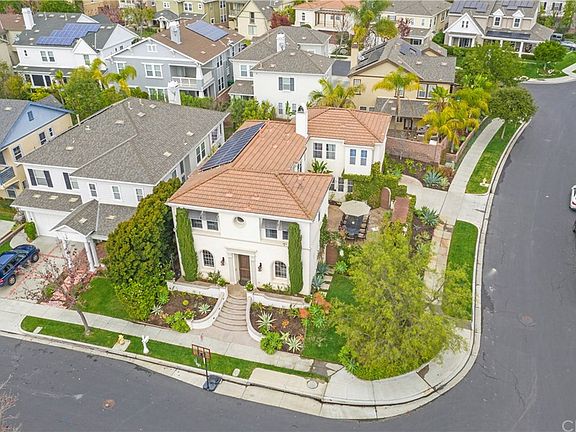 Providing two separate yet equally inviting yard spaces, this elegant Spanish villa in Ladera Ranch hosts a unique elevated corner homesite that boasts privacy and greenbelt views. The home's traditional backyard reveals an intimate covered patio and play area, while the side yard showcases a spacious al fresco dining patio with built-in BBQ area & custom water feature. Handsome hardscaping and drought-resistant landscaping embrace the residence, which extends approximately 2,902 square feet & features 5 bedrooms & 3.5 fully remodeled baths. ( All Bathroom's Tastefully and Recently Remodeled!!) Genuine wood flooring & custom crown molding lend an added touch of elegance to living areas that include a formal living room with fireplace, a formal dining room, a casual fireplace-warmed family room, and a remodeled kitchen with white cabinetry, granite countertops, full tile backsplash, an island with prep sink, and premium stainless steel appliances. Additional Upgrades: SOLAR, French Doors, designer paint, updated lighting and window treatments are displayed throughout. Because of its corner location, the two-car garage faces the right side of the home, giving the home the feel of a classic Old Hollywood estate. From its location at the beginning of a cul-de-sac street, the refined residence is within easy reach of award-winning Oso Grande Elementary School & the popular big red bucket at the Terramor Aquatic Park. HURRY on this One!!