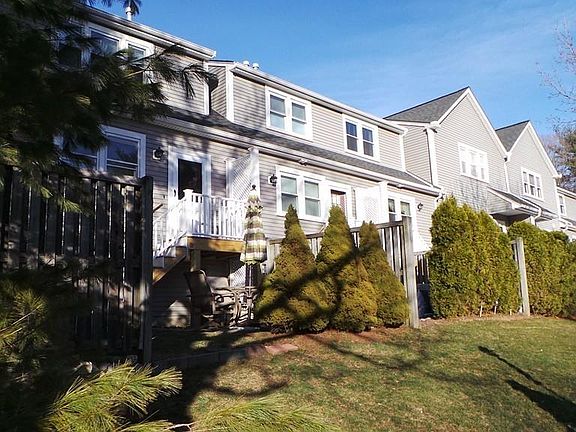 Great END UNIT Condo with large rooms though out! Largest unit in the complex. Open floor plan has kitchen w/ hardwood floors open to dining room with hardwood, 21' living room, 2 master sized bedrooms with Hollywood bath, Plus a 17x17 family room, 18x13 office/exercise and laundry room in lower level. A lot of living space here, it feels more like a house but has the convenience of carefree condo living! Great condition with 2012 septic system, roof, driveway, windows and hardwoods all since 2000. Conveniently located near town highways and shopping!