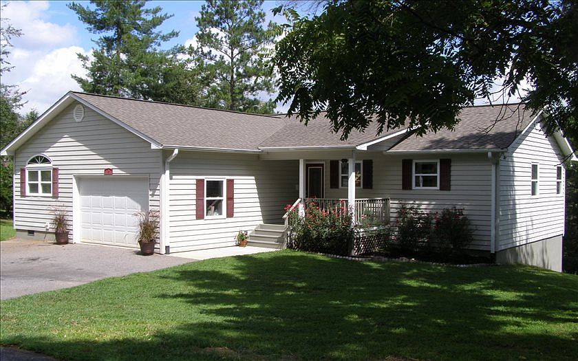 View of Lake Nottely and the North Georgia mountains from this beautiful three bedroom three bath home. Two bedrooms, two baths, and laundry room on main level. Hardwood floors. Large kitchen with stainless steel appliances and living room with wood burning fireplace. Attached garage. Big open deck to enjoy the views, grilling, and the mountain living. Full finished basement with bedroom, bath, den, and kitchenette. Extra finished room for media/craft/office. Easy maintenance with vinyl siding. Nice, gentle yard to garden. Located within three or four minutes to Blairsville for shopping, schools, doctors, and restaurants.