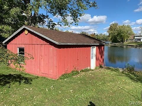 Privacy, riverfront and one level living. This waterfront ranch home on a dead end street with city water, features an open layout, cathedral ceiling, three bedrooms, and a large living room with sliding glass doors for beautiful Oneida River views. Avoid storage fees with your very own boat house. Enjoy the space and function of the 24' by 32' two story, steel girder built garage that was made to last featuring an oversized door to accommodate parking and all your toys. Swimming, boating and relaxation in your very own backyard, start living the river life now!