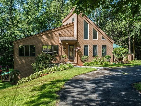 Best and Final Offers due Thursday Sept 5 at 7 Pm to listing agent with attached multiple offer form. Gorgeous setting, very striking 3 BR 2 BA Contemporary in wonderful private end of road location! Experience soaring cathedral ceilings, spectacular windows, cozy gas fireplace and multiple sliders to huge wrap deck! Best of one level living with open concept Living Room and Dining area, renovated Kitchen and main floor Bedrooms which include Master with full Bath. Finished daylight lower level with huge Family Room and 2nd finished Room, Workout Room or Office, both with sliders to second large deck. Bonus 3 mini splits for air conditioning and back up coal stove. Great landscaping, large shed, generator and lots of parking available. This is a must see!