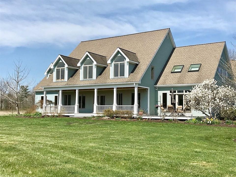 Dancing with sunlight and sporting a gorgeous view of the Mt Holyoke Range and the Pelham Hills is this stunning Contemporary Cape. A floor plan with a flair, this open, inviting architectural beauty is both flexible and practical. A newly renovated kitchen offers Wolf cook top and double ovens as well as a sub zero and a large island with seating. Spacious first floor Master Bedroom with dressing area and bath. Upstairs the bedrooms are generous in size and sport window seats,built-ins and stunning bathrooms. A Study and Office are ideal home work spaces. Walk in attic offers expandable options. 3 car garage, new HVAC system and in-ground sprinkler system are only a few of this homes many amenities. Bordering conservation land, there's a series of well-maintained trails for hiking, dog walking or cross country skiing. Located at the end of a cul de sac, you're minutes to all the South Amherst hot spots - Atkins Farms, Andrew's Greenhouse,Groff Park and more - an A plus!