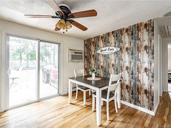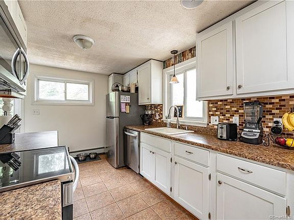 Welcome Home to your 3 Bedroom 1 Bath Sweet Ranch in quiet neighborhood located near the CT/MA line. 2022 - New Roof, Chimney & Gutters. (APO) Kitchen Appliances less than 2 years old, with pretty painted cabinets & Ceramic Tile Floor. Adorable Eat In Kitchen w/Slider overlooking your Fenced in Back Yard. Hardwood Flooring runs throughout the dining area, into the living room, down the hall as well as in all 3 Bedrooms. (One BR carpeting w/ Hardwood underneath) All Bedrooms have decent sized closets and overhead fans w/ lights. The Full bath has ceramic tile flooring, tub surround & pretty painted vanity. Full Basement with Plenty of Storage w/ Built in Shelving, Workshop area, Hatchway (3-4 years), New recessed lighting, & poured concrete foundation. Separate laundry area, w/ ceramic Tile. New Electrical Panel 2017. (APO). Exterior Trex Deck w/ lower patio. Yard is fence w/ garden areas & a Shed for outdoor tool storage. You will be delighted to view 9 Tabor Rd!