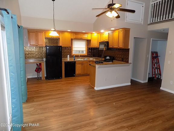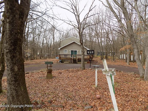 VERBAL ACCEPTANCE, TAKING BACK UP OFFERS ONLY Ready to move in Large 2 bedroom, 1 Bath Ranch, with huge master bedroom, 1 large bath, eat-in kitchen with all appliances, dishwasher. Microwave, Refrig, and stove, Large full basement ready to finished off, with radon system and washer and dryer, nice sized front deck, wooded lot with u shaped driveway and nice size shed. Super low taxes $1556 per year and annual assoc dues of $1220, all located in short term friendly community with 5 lakes, 2 pools, tennis, garbage pick-up, and 24 hour guarded gates, near all Major Pocono atraactions