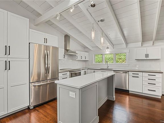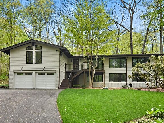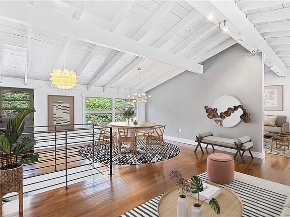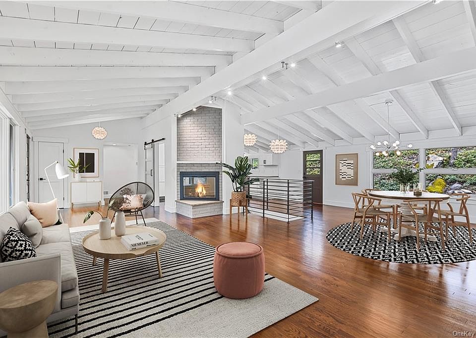 Long drive to private setting. Absolutely turn-key Modern Deckhouse. Vaulted wood ceilings painted in crisp white, dark hardwood floors, walls of windows and two fireplaces. Easy, open floorplan perfect for entertaining and everyday living. Completely renovated and updated with new keen attention to detail. Incredible open Living and Dining Rooms. Stunning Kitchen with Quartz counters, stainless appliances and subway tile backsplash. Family Room with Fireplace. Private Master Suite with Bath. Three additional Bedrooms. Two additional Baths. Over two acres at the end of a sleepy cul-de-sac. Convenient location.