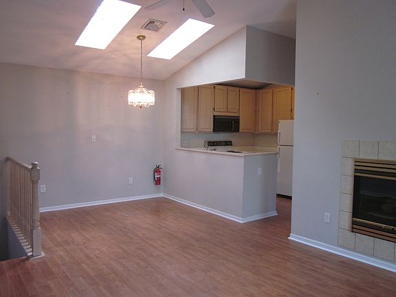 Move right in! New laminate floors, just painted, updated Bath, gas FPL, vaulted ceiling in LR and Master Bdrm. Appliances include dishwasher and washer/dryer in home, plus Garage. Amenities include, pool, tennis, fitness, walking/biking trails. No Smokers