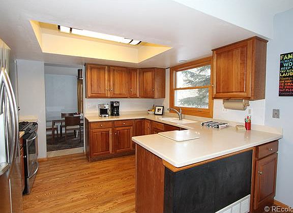 Desirable Ken Caryl Valley. Pottery Barn beautiful, backing to walking trails and greenbelt. Mountain views. 3 bedroom, 3 baths~2 car garage. Updated eat-in kitchen with stainless steel appliances and a spacious pantry. Hardwood floors~loft~newer roof~newer Pella windows~newer furnace~newer paint~newer tile. Serene backyard with mature trees and covered deck. Outdoor BBQ with gas hookup. Award winning schools. Incredible amenities including pools, tennis courts, equestrian center and trails.