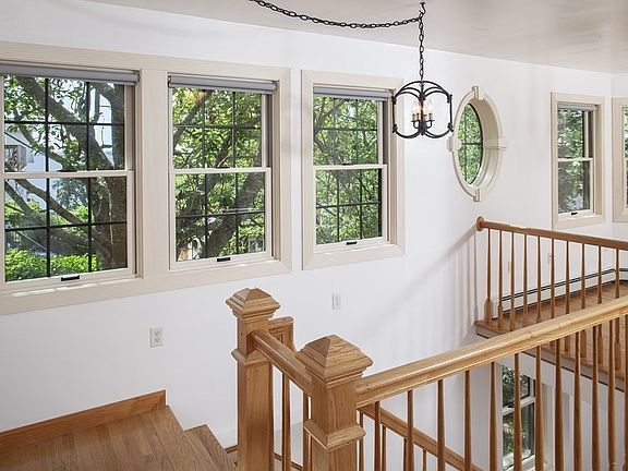 Condo alternative. Unique Village hillside home - beautiful Victorian design on the outside and contemporary within. Built in 2007, it is located on a secluded dead end street with lovely bay views now and expansive off-season. Its 1800 sf of living area has all oak floors and lots of windows to capture the beautiful views. There is a wood-burning fireplace on the main level separating the kitchen and dining area.The second floor has 2 bedrooms (one large, one small) and the top great room has multiple seating areas perfect for entertaining. Lower level would make perfect at-home office. This home is located just steps to the library and a short walk to the commuter boat.
