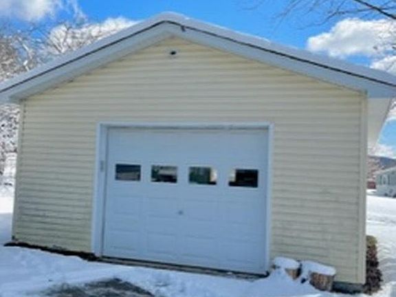 One floor living in a desirable area with ample garage space. Sitting on almost an acre, this home features a large living room with brick fireplace and picture window. First floor laundry room, plenty of closet space, open kitchen and dining room, two bedrooms and full bath. Large basement with a finished room for extra living space, bedroom or office. Plenty of room for two cars in the attached garage but also has a detached one car garage. Don't miss out on this one!