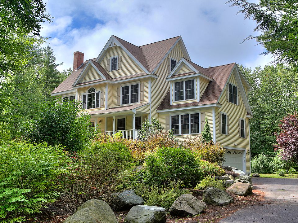 Beautifully updated colonial tucked away for ultimate privacy! Enjoy your wooded view from your charming front porch, large back deck or backyard fire pit. Located in an established neighborhood at the end of a cul-de-sac, just around the corner you have access to the Town forest walking trails and all within the desirable SAU 16 school system. Inside enjoy a sensible floor plan with separate formal living and dining rooms, large eat-in kitchen with granite counters and spacious family room over garage complete with cozy wood burning fireplace. Large walk in pantry and half bath off kitchen! Upstairs find 4 sizable bedrooms and 3rd floor walk-up ready for future expansion. Seller upgrades in past 3 yrs include: Hardwood flooring in the family room and living room, tile flooring in the kitchen and finished the cabinets in the kitchen. Painted the house. Changed/updated all the lighting fixtures. Delay may mean disappointment, see it today!