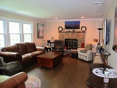 Center Hall Colonial in Oak Park development. Spacious 2800 sq. ft. center hall colonial, 9 rooms on flat fenced in yard. (Florham Park side of E. Hanover). 4 bedrooms, office on 1st floor, 2.1 updated baths, master suite w/ walk in closet and additional double closet and vanity table area. Partial stucco and brick front, professionally landscaped & beautiful hardwood floors Updated eat in kitchen w/island, granite, stainless appliances, formal dining room, living room, family room adjoins eat in kitchen. Huge unfinished basement with high ceilings for future finishing. Central air, gas hot water baseboard heat & recessed lights. Public sewer/water, 2 car garage, Taxes approximately $9446. Close to major highways for commuters. Home is move in ready. Beautiful furniture and wall art available for purchase.