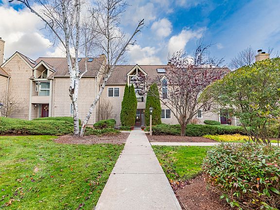 In the heart of West Hartford, this luxury condo delivers that unmistakable "this is home" feeling the moment you step inside. As you walk in, you're welcomed by a refined foyer that flows seamlessly into an open floor-plan, greeting you with soaring lofted ceilings and an abundance of natural sunlight streaming through expansive floor-to-ceiling windows. The spacious living room is anchored by a serene fireplace, creating the perfect setting for relaxation or entertaining. A striking two-story library wall-complete with custom built-ins and a rolling ladder-adds a touch of elegance and character, while French doors lead to a private deck ideal for morning coffee or evening unwinding. This stunning townhouse-style condo is just moments from the prestigious Hartford Golf Club and all of the dining, shopping, and lifestyle amenities that make West Hartford so desirable. Offering over 2,000 sq ft of beautifully designed living space, this 4-bedroom, 3.5-bath home blends dramatic architectural details with modern comfort. The finished walkout lower leve offers exceptional flexibility, featuring two additional bedrooms perfect for guest space, home gym, or office space, plus a dedicated laundry area and full bathroom. A generous 2-car garage provides convenience and ample storage. With its thoughtful layout, dramatic design features, and unbeatable location- this condo delivers the perfect blend of style, space, and convenience. Don't miss the opportunity to make it yours!