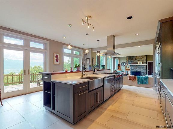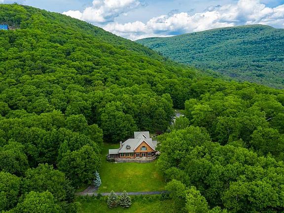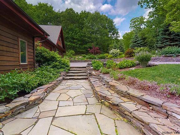 This stunning 3,000+ square foot, custom built, cedar-sided contemporary has panoramic views of the Ashokan Reservoir and Catskill Mountains. This home is perfectly private on 9 acres of mature landscaping, and located on one of the area's most desirable roads, surrounded by other high-end homes. Bluestone walks and patios envelop the home's exterior. Every season offers a beautiful landscape of nature's offerings-especially the fall colors painting the mountains! The open floor plan main level features the perfect spaces for entertaining. Love to cook? The gourmet kitchen has custom cabinets, stainless steel appliances and a generous sized island to prepare for guests and parties of any size. Open the French doors off of the kitchen and enjoy your morning coffee on the patio overlooking the stunning views. The family room off the kitchen has a floor to ceiling bluestone fireplace and provides access to the three-season porch. The dining area can comfortably seat 10; currently being used as a music room. Flooring is a tasteful mix of wood flooring and ceramic tile, and the entire home has radiant heat. The second floor has three gracious bedrooms, all with cathedral ceilings and oversized windows which flood each bedroom with natural light. Wake up in the master bedroom and be greeted by the majestic sunrise. The spacious master bath has stylish tiles, walk in shower and Jacuzzi tub. Don't miss the lower level that adds another 1,000+ square feet of completely finished space. The lower level has a wood stove and full bath, and can be used in a variety of ways. Use it as a home office, guest quarters, media room or home library. There's an unfinished bonus room over the 2-car heated garage. An additional garage and shed sit at the lower part of the parcel with a separate driveway. This serene location is just minutes to the village of Woodstock, easily accessible to the NYS Thruway and a short drive to many of New York's destination ski centers.