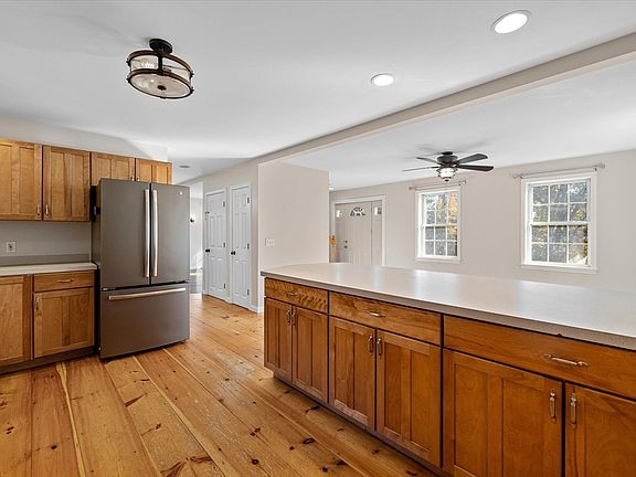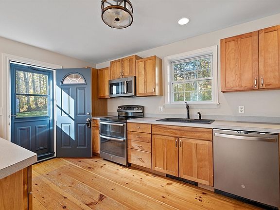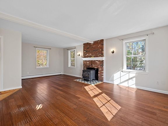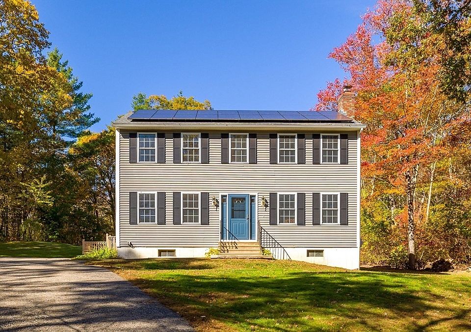 Welcome to 9 Town Farm Rd! Step inside and you will find yourself in the heart of the home; the kitchen. The kitchen boasts gorgeous wide plank wood floors and stainless steel appliances and flows right into the adjoining dining room, which offers plenty of space to host friends & family. The living room is centered around a cozy fireplace with wood stove. Upstairs, a spacious primary bedroom awaits with cathedral ceilings and a walk-in closet. An oversized bathroom and the 2 remaining bedrooms complete the second level. Additional space in the basement is a blank canvas for your ideas; make it into a playroom, home gym, you name it! Maximize energy savings with OWNED solar (solar loan to be paid off at closing) and peace of mind knowing that a new roof was installed in 2022. Nestled on 2.72 acres of tree-line private land you’ll enjoy spending time outdoors just as much as indoors. Your next chapter starts here!