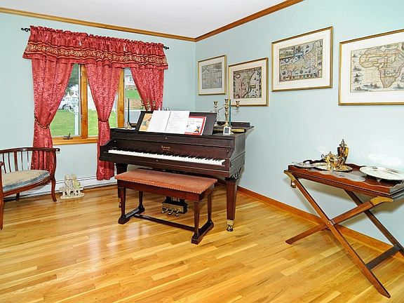 One floor living! Meticulous Ranch on a manicured and professionally landscaped level 1/3 of an acre in a desired neighborhood. Offers 3 bed's, 2 baths, four season room and a full finished basement. Updated EIK w/granite counters and a separate breakfast area/sitting Rm. Beautiful Four Season Room w/ tile floors and separate heating/cooling (Heat Pump) leads to maintenance free deck and yard. Formal Dining Room w/large bay window opens to Formal Living Room, Master w/en-suite bath and 2 additional bedrooms, main bath and laundry complete the main floor. This bright home has large casement windows throughout and boasts hardwood floors throughout, 2 updated baths and recent updates :( Roof, Siding and Gutters 4 years old, Central Air 3 years, furnace 9 years old). Large finished basement and plenty of storage. 2 Car Garage. Short Distance to Town Pool, Boys and Girls and School.