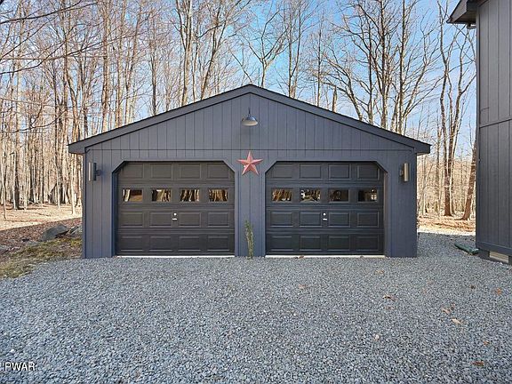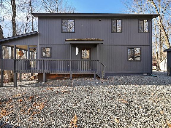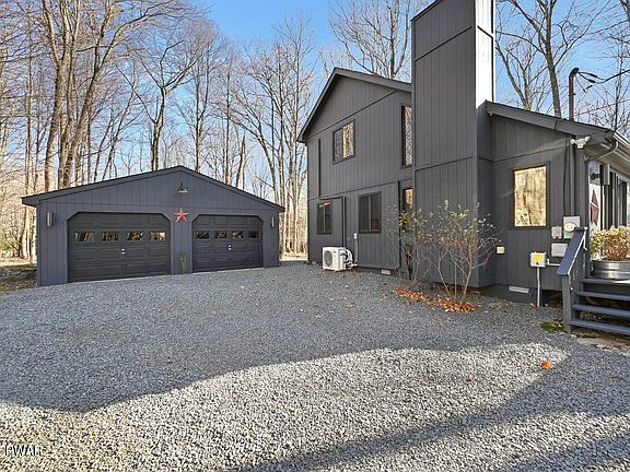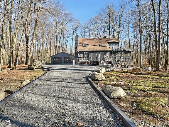 Located at the end of a cul-de-sac in a four-season amenity filled community in The Northern Poconos, just two hours from the NY, NJ and Philadelphia Areas. A long private driveway leads to this beautiful home on a very private, oversized, wooded level lot in the North Section of the community, just a short walk to the golf course, indoor recreation/fitness center and clubhouse. Oversized detached 2 car garage, generous sized rooms, entertaining decks, and a large screened room. Attention to detail was part of the original design of this customized home including functional skylights, solid wood cabinetry, and tongue and groove solid pine paneling throughout. The walls are beefy 2x6 construction with extra insulation. Fully furnished., Beds Description: 2+BED 2nd, Beds Description: 1Bed1st, Baths: 1 Bath Level 1, Baths: 1 Bath Level 2