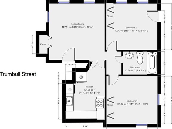 This 600 square foot apartment home has 2 bedrooms and 1.0 bathrooms. This home is located at 9 Trumbull St #201, New Haven, CT 06511.