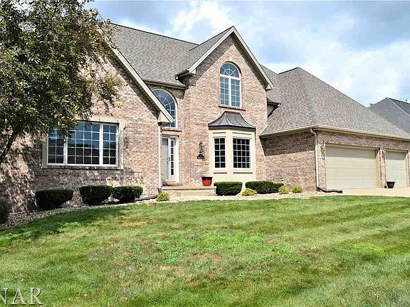 One of the most beautiful views of the golf course from this custom built home at Fox Creek. Open living features cathedral ceilings, skylights, fireplace, & gorgeous wall of windows. Light filled kitchen with breakfast bar, walk-in pantry, & abundant cabinetry & counter spaces. Formal dining room is enhanced by the bay window & trey ceiling. First floor owner's suite includes new upgraded laminate flooring, walk-in closet, and full bath with jetted tub, dual sinks, & separate shower. Main level BR-4, laundry, & full bath. A spacious loft, two large bedrooms, & full bath complete the 2nd floor. A finished full bath, lookout windows, and 9' ceiling await your personal finishing touches in the full basement. Central vacuum and new 50 year roof with transferable warranty. Home warranty provided. Tiered decks with views of a creek & the 7th & 8th fairways. Fenced yard and irrigation system. Oversized garage with extra deep 3rd car stall for more storage options.