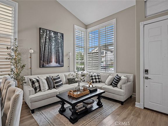 Back on the market, buyer could not perform. Nestled among rolling hills in the charming community of Hidden Trails, this exquisite home offers rare privacy with no neighbors behind and complete upgrades including newly replaced floors, double-pane windows, shutters, high-end appliances, A/C, roof with owned state-of-the-art solar panels and highly customized garage w/organized storage that will delight the most discerning buyer & surpasses every home in this price range. Dramatic soaring ceilings & open concept floor plan offer casually elegant living & grand space for entertaining. Front entry opens to formal living and dining rooms w/rich wood flooring & walls of windows framing inspiring outdoor views. Chef's kitchen is the hear of this home & has been artfully remodeled w/gorgeous quartz surfaces, custom backslash & high-end stainless appliances. Chic light-filled allure, cozy fireplace & convenient home management space compliment the adjoining family room & sunny breakfast nook w/panoramic garden views, blending the home into the enchanting backyard w/pergola-covered patio, brick pavers throughout, built-in bbq, the ultimate private setting for outdoor living and entertainment. Sweeping staircase leads to the generous bedrooms upstairs including luxurious master w/vaulted ceilings, tree-lined vistas & upgraded spa-like bath, w/walk in closet. Enjoy award winning public & private schools, convenient shopping & dining, community parks & pools, hiking & biking trails & the Santa Margarita Lake Beach Club. Hurry this model-like home is a rare opportunity at this price. Did I mention a brand new TESLA charger.