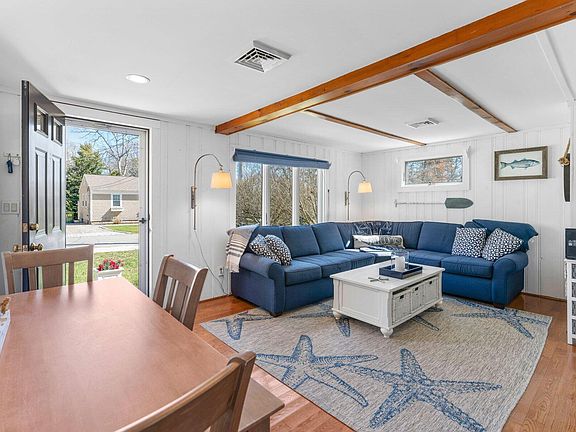 Summer is around the corner and here is that quintessential piece of Popponesset you have been waiting for! This bright cheery cottage radiates warmth and charm. Enter to a spacious living room open to the kitchen and breakfast bar. Just down the hallway are 3 bedroom areas, updated hall bath as well as a new half bath! Beyond the living room and adjoining the kitchen area is a bonus room providing sleeping space or an ideal area to work from home! The best surprise is the additional 300 SF - 3 season porch overlooking a beautiful oversized flat private back yard with a spacious patio area. Let the parties begin here with ample room for back yard games, family BBQs and space for all to sit down and dine together and share stories of past memories and future plans in this wonderful place we call Poppy. Some of the recent improvements include new HVAC/heating system, half bath, as well as new oversized shed for ample storage!