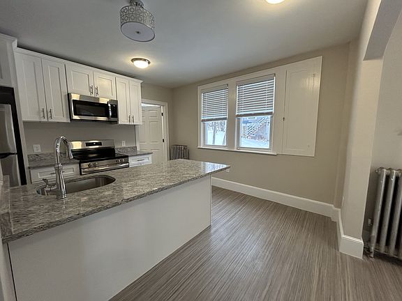 Recently renovated townhouse with large living room / kitchen area on the first floor, three spacious bedrooms on the second floor and large third floor office space or fourth bedroom. Brand new kitchen appliances, hardwood floors and in unit washer / dryer. Tenant is responsible for gas heat and electric utilities. Pet friendly. Limited off-street parking available for a monthly fee.