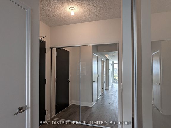 Welcome to the Luxurious Triumph at Valhalla Condos, located in the heart of Etobicoke minutes to Sherway Gardens, Toronto Golf Club, & the waterfront! Reach downtown Toronto with nearby access to Hwy 427 and the TTC! Enjoy panoramic views of the downtown skyline from the open concept living/dining room, featuring floor to ceiling window walls & walkout access to the balcony. The modern kitchen is perfect for entertaining friends and family with stainless steel appliances and a granite counter island w/ breakfast bar. Ample storage in the primary bedroom with large walk in closet. Multi-purpose, enclosed den is perfect for a nursery, guest room, office, storage, and more!