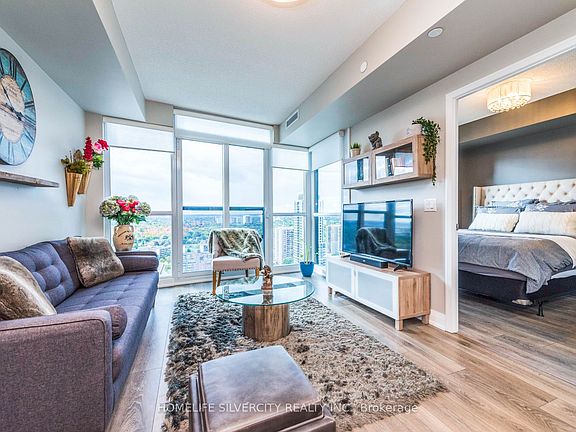 Furnished 1 bed room plus Den Executive Condo with upgrades & enhancements. Modern upgraded kitchen with granite countertop and stainless steel appliances. Custom window Coverings. 9 ft ceiling. Master bedroom with mirrored closet. Den with Sliding doors. Perfect for work from home or as a Second bed room. Washer and dryer in the unit. Tenant pay their own hydro, Internet and Content liability insurance. Single or couple with long term employment history with good credit score.
