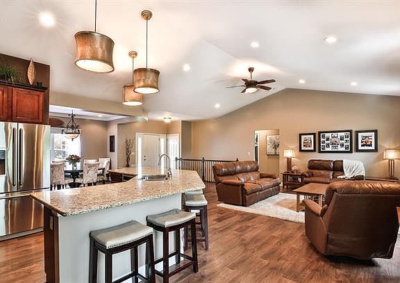 Welcome to this amazing Ranch home on a court in the highly sought after Wentzville School District. This home has many updates inside & out. The main level boasts an open floor plan with vaulted ceilings, newer laminate floors & custom trim. The exquisite eat in KIT includes custom cabinets, s/s appliances, granite counter tops, huge center island & breakfast bar. The GR is a definite gathering spot featuring a stone gas fireplace. Formal DR area is perfect for entertaining. Large MBR suite with walk in closet & full bath with tub & separate shower. Divided bedroom plan has 2 add'l bedrooms and main level Laundry completing the main level. Downstairs is the cozy finished basement complete with a FR, Recreation RM, Media Rm, Full Bath, 4th possible sleeping area & storage area. Outside the 40 x 14 patio is a wonderful addition to the flat & level back yard with trees adding privacy, Irrigation system & landscaping. 3 car, oversized & heated garage. A MUST SEE!