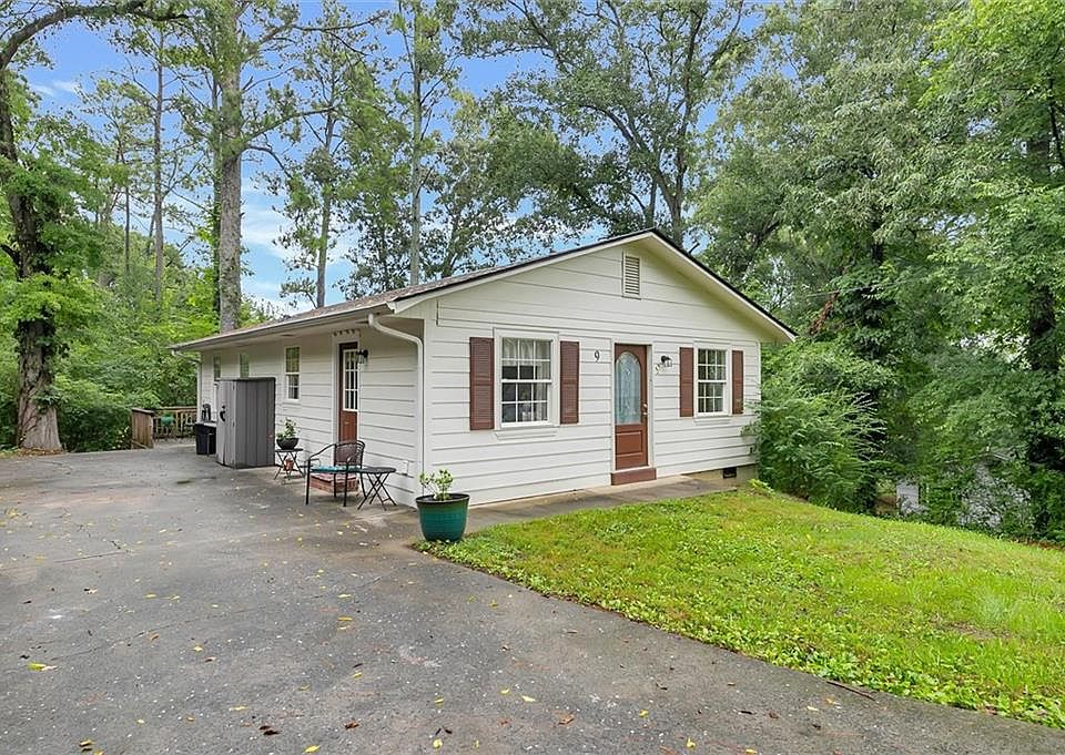 Exceptionally Charming Home in Cartersville! Nestled on a 0.33-acre lot in the desirable subdivision of Pine Vista Estates, this 3BR/1BA, 1,040sqft ranch delights with an attractive exterior color scheme and a beautiful backdrop of towering mature trees. Built in 1971 and wonderfully updated, the captivating interior has an entertainment-ready floorplan, tons of natural light, a family room, and a semi-open concept kitchen featuring faux wood floors, black appliances, granite counters, tile backsplash and white cabinetry. Designed for joyful get-togethers, the private outdoor space includes a deck and greenspace. All bedrooms are well-sized with dedicated closets, while the remodeled full bathroom (2022) has a walk-in tile shower, tile floors, and a storage vanity. Other features: long, paved driveway, laundry area, no HOA, newer roof (2020), 2-new mini-splits installed in 2022 (central heat/air), newer water heater (mid-2021). Only minutes from downtown Cartersville, restaurants and shopping!