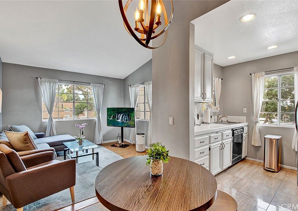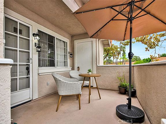 Welcome to 9 Via Meseta located in the Las Flores III community in the heart of Rancho Santa Margarita. Gorgeous, immaculate, upper end unit. Peaceful And private location surrounded by a lush greenbelt. 2 bedrooms, 1 bath, 1 carport #108, 1 permitted parking space, large front balcony with storage closet. Remodeled kitchen with white painted cabinets, new hardware, stainless steel appliances. High ceilings, added recessed lighting and light fixtures, laminate and tile floors, drapes and rods, custom paint, mirrored wardrobe doors and more. Refrigerator and stackable washer and dryer included. Resort style community pool and spa. Walk to nearby shops, restaurants, Central park or Cielo Vista park. Walk or bike to Rancho Santa Margarita lake, or take a hike on the surrounding trails. Rancho Santa Margarita residents enjoy the beautiful RSM lake, beach club, 13 parks, playgrounds, community pools, sports courts, hiking and biking trails. Just a few minutes away from O’Neill Regional Park, walk to top rated schools and easy access to the 241 Foothill Transportation Corridor. Low HOA dues and low tax rate.