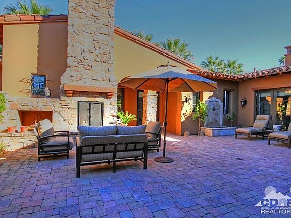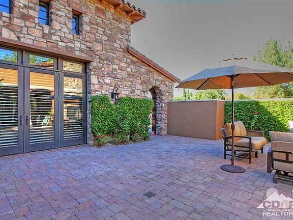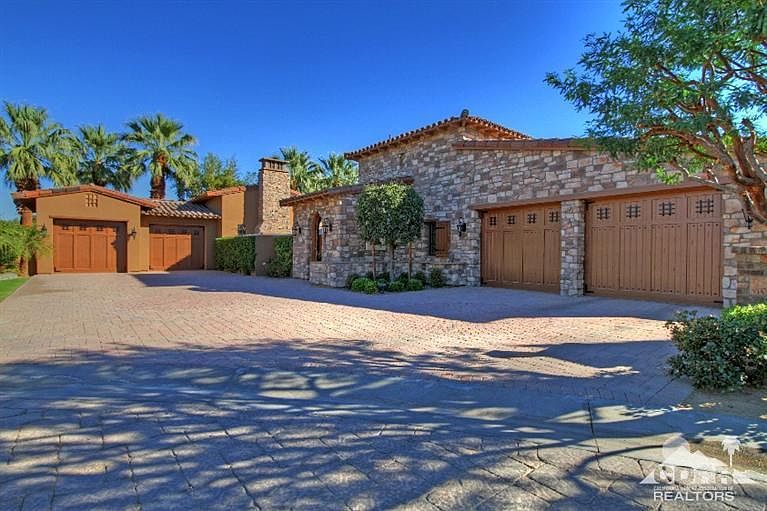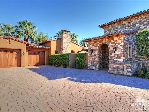 This Lifestyle Estate Collection near half acre estate in the private gated community of Bella Clancy with cobblestone streets in a Tuscan estate villas designed development located off Clancy Lane in the heart of Rancho Mirage. The home exterior is finished in stone, brick and hand-applied newly painted smooth plaster walls, natural stone driveway and walk-way pavers, crafted wooden doors, front walled courtyard with fireplace and south facing back yard with pool/spa, outdoor kitchen, fireplace and professionally landscaped grounds. The home interior includes; 3 bedroom suites plus large vaulted office/media room, walnut wood tongue & groove plank flooring throughout, carpeted bedrooms, custom cabinetry, kitchen sub-zero/wolf appliances, coffer crown molding vaulted ceilings, fireplaces throughout, custom media center, sound system and a large 4 bay garage for the toys! A must see estate property on your tour of fine luxury homes.
