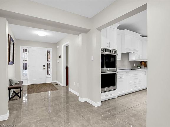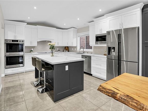 Welcome home to Vidal Court ideally located in award winning Vineyard Valley. Highlights of this bright and spacious home include roomy front hallway, elegant porcelain tiles, convenient main floor home office, large living room, hardwood floors and fully renovated entertainer's dream kitchen boasting ample cupboard space, quartz counters, kitchen island, crown moulding and stainless steel appliances. Enjoy just over 3900 sq. feet of total living space featuring updated two-piece bathroom, sizable primary bedroom, spacious walk-in closet, five-piece ensuite and fully finished lower level (bar area, fourth bedroom, four piece bathroom, recreation room and exercise room). Main floor laundry, pot lights, stamped concrete walkway, covered front porch, concrete patio, double car garage and private court location are just some of the features of this stylish family home. Perfectly situated close to the YMCA, highway, Lake Ontario, parks, schools, award winning wineries, farm fresh markets and the scenic towns along the Niagara Escarpment including Grimsby, Beamsville, Vineland and Jordan.