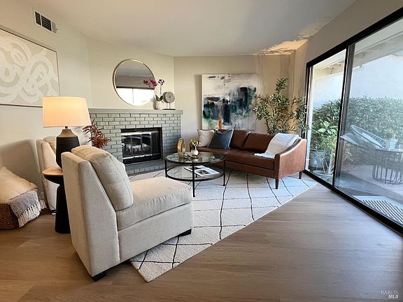 Enter through a private front gate to your own secluded garden patio with redwood decking and a hot tub for relaxing under the stars. The largest model, this spacious 3-bedroom, 2.5-bath condo has abundant southeast light and a vaulted ceiling in the primary bedroom suite. The open living room with fireplace is just aside the generous dining area and kitchen. Sliding glass doors, from the living room, open onto the front patio garden and jetted hot tub. A second patio is located just off the kitchen and dining area. Meadow Oaks residents enjoy close proximity to the Marin Civic Center, with a twice-weekly farmers market, walking paths around the duck pond, a quality corner grocery and butcher, post office, and the JCC. China Camp is just minutes away, offering shoreline access, hiking, biking, and camping. All this is just a minute from Hwy 101 offering great convenience for getting around Marin. Located in the Meadow Oaks community where residents enjoy a large swimming pool (big enough for laps), a recreation room, walking paths throughout the beautifully wooded complex, and direct access to miles of adjacent open space hiking trails.