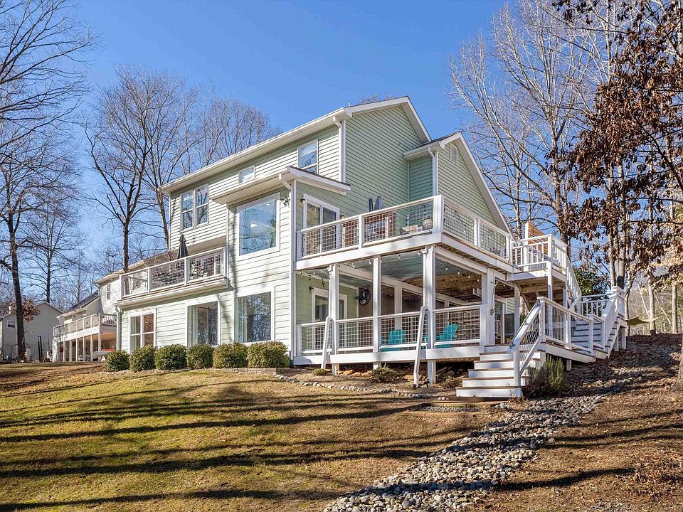 Welcome to 9 Vine Ridge Drive! Come enjoy lake life while feeling like you are on vacation year around! This stunning waterfront property is located on a quiet street with numerous upgrades and plenty of space for entertaining family and friends both inside and out. Brand new and freshly stained dock boards with 3 levels. Inside, a welcoming foyer with high vaulted ceilings greets you. The kitchen, with tons of natural light, is completely renovated featuring Kraft-maid cabinets, custom teak countertops, a beautiful farm sink with chef’s faucet, recessed lighting, and connects to an open dining area. The terrace area (downstairs) features an electric fireplace, bar area, and 2 additional bedrooms. This lovely home features multiple decks outside, all with fabulous waterfront views. Water views from each of the 5 bedrooms. Numerous Improvements and Upgrades throughout. You don't want to miss this one!