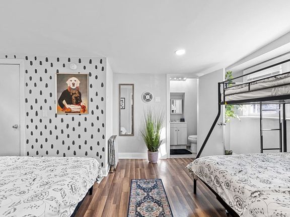 Experience comfort and convenience in this whimsical three-bedroom apartment located on the first floor. With its airy layout and cozy bedding, this charming apartment is perfect for families and friends looking for a peaceful retreat. You will sleep in three bedrooms equipped with seven beds, and enjoy a full kitchen and two full bathrooms. Whether you're in town for a family vacation to NYC or a work trip, this apartment is the perfect home away from home. This apartment offers a full kitchen and two full bathrooms. Additional air mattresses and bassinets are available should you need them. A folding table and folding chairs are also available in the closet. You will have a dedicated parking spot in a private parking lot on site. Don't miss out on this incredibly affordable opportunity to experience NYC with convenience and style in one unforgettable package. This home was designed to replicate the hotel feel at a fraction of the price. It maximizes beds and comfortable sleeping arrangements at the expense of shared spaces. It is perfect for families and groups who plan on spending the majority of the time exploring NYC and just need an efficiently priced place for the group to sleep at night. A folding table and folding chairs are available for any work-from-home needs.
