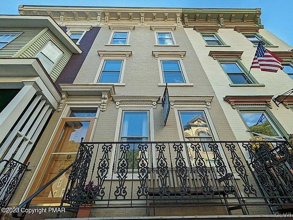 Rare opportunity to own a spacious, charming Victorian townhouse in the heart of historic Jim Thorpe! This stunning brick home on Opera House Square has 2220 square feet, 4+ bedrooms, 2.5 bathrooms, & rear, tree-lined deck! Gorgeous features throughout include original hardwood floors, molding, woodwork, and an antique newel post gas lamp figurine in the foyer! The 1st fl features potential gallery/commercial space (subject to zoning approval) or enjoy as a spacious main living area w/ recently renovated full bathroom in the rear! The 2nd fl showcases a gourmet kitchen w/ slate countertops & fireclay farmhouse sink, dining room, bedroom/office, & living room overlooking Opera House Square! 3 large bedrooms & full bathroom are situated on the 3rd fl! Being sold as-is partially furnished!