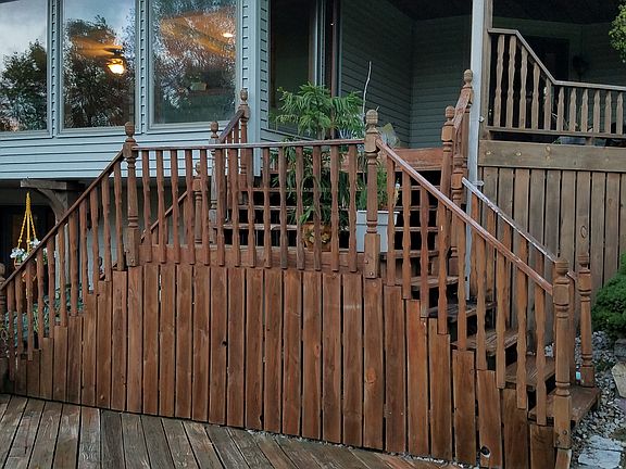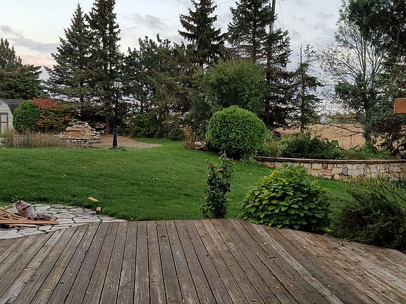 Large ranch home with a spectacular view overlooking huge 1+ acre fenced in lot. Wonderfully landscaped with pond, beach, fountain, bridge and large trees to provide privacy on all sides of the home. Recently updated, with a modern feel and open concept. Home offers 4 bedrooms, 2 bathrooms, hardwood front entrance, washroom, sunroom (40 foot wall of windows overlooking yard on 3 sides), exposed basement in the back of the house with sliding door that walks out to a huge multi-level deck. Basement was just remodeled 5 years ago, to provide the 4th bedroom/ office, large family room, full bathroom, and workshop. Home has a 2 1/2 car attached garage and 2 car detached garage. Lower deck as double staircase that walks up to mid size covered deck with a very nice view of the yard. Truly one of a kind house that words can't do justice to. Come see if quickly before it's off the market!