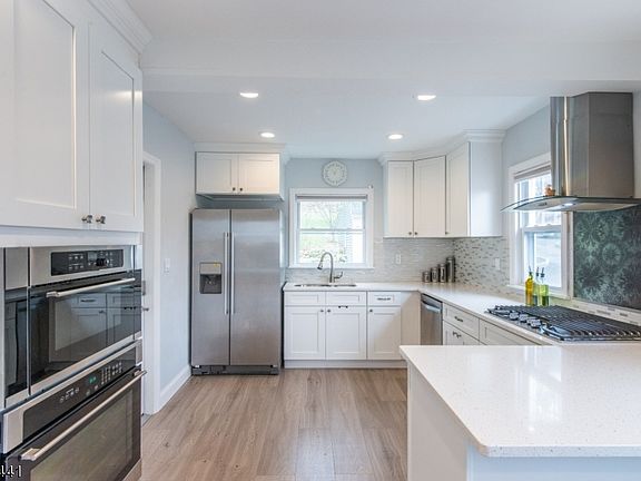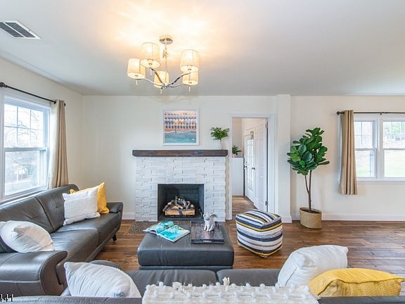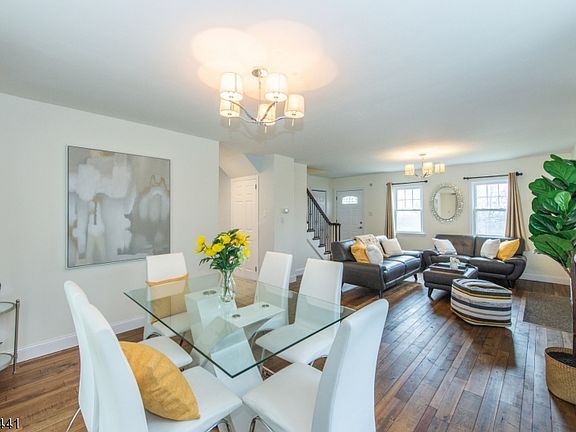 Updated to perfection with a gorgeous backyard. Your search is over for a first floor bedroom, or use as a family room, in this meticulously updated 3 bedroom+office, 2 bath home. First floor boasts cook's eat-in kitchen w/ separate dining area, bedroom (or family room), designer inspired full bath with step-in shower, sunny open living room with gas FP and dining room with wall of windows. Step out onto the porch and exhale among pine trees and views of rolling green which is your backyard! Home office w/ vaulted ceiling completes the first floor. The 2nd fl offers two lg bedrooms, full bath with double vanity. Ample closet space. The finished basement offers lg rec rm, laundry rm, tons of storage. Bonus outbuilding with interior stone fireplace! Mins from Upper Montclair, conven located to NYC train/bus!