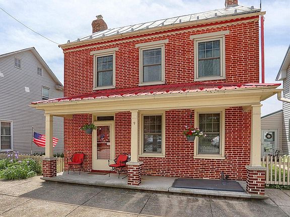 Welcome to this lovingly maintained brick detached home in the heart of New Kingstown. Inviting covered front porch offers a warm, welcoming feel from the moment you arrive, perfect for morning coffee. Kitchen features Sandstone countertops, all appliances remain and opens to the dining area. Main floor Living room w/wood details and crown molding, plus a sunroom at the back overlooking the yard. The upper level includes two spacious bedrooms and a full bath. Bonus area could be used as an office space or craft area. Also features walk-up attic, full basement and shed for extra storage. Thoughtful updates create a cozy and inviting atmosphere, also features hardwood floors, replacement windows and a metal roof . A detached 2-car garage w/updated electric and additional off-street parking ensure convenience. Enjoy the beautifully landscaped yard from the patio which backs to Potteiger Park. Sidewalk-lined streets complete the neighborhood’s welcoming feel, making this an ideal location for evening strolls. A rare find in today’s market—schedule your tour today and see the potential of this move-in-ready gem!