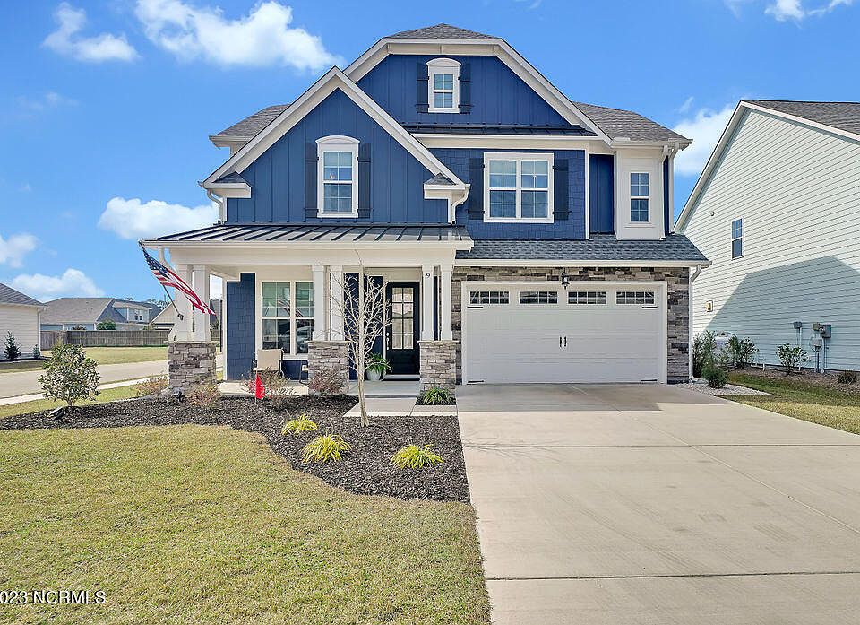 Welcome to 9 W Shooting Star Lane in the highly sought after community of Wyndwater! This meticulously maintained Charleston floor plan was built in 2021 by Robuck Homes and presents the perfect blend of upgraded living and functionality with custom cellular Levelor window blinds throughout, 10' ceilings on the first and second stories, and a coffered ceiling and custom builtins in the living room. With 4 bedrooms, 3.5 baths, an office/gym and a fully finished third floor, this home is situated on a corner lot with no-through traffic. The kitchen is bright and welcoming and features a large prep island, soft close cabinets and drawers, quartz countertops and a walk-in pantry. All bedrooms are on the second floor including a beautiful master suite with a large garden tub, hand-tiled shower and an enormous walk-in closet. Enjoy the coastal Carolina sunsets on the fully screened back porch, overlooking a backyard perfect for playing or a fire pit. Walkable to neighborhood amenities and districted for the highly desired Topsail School District.