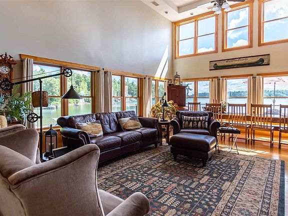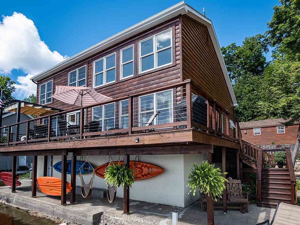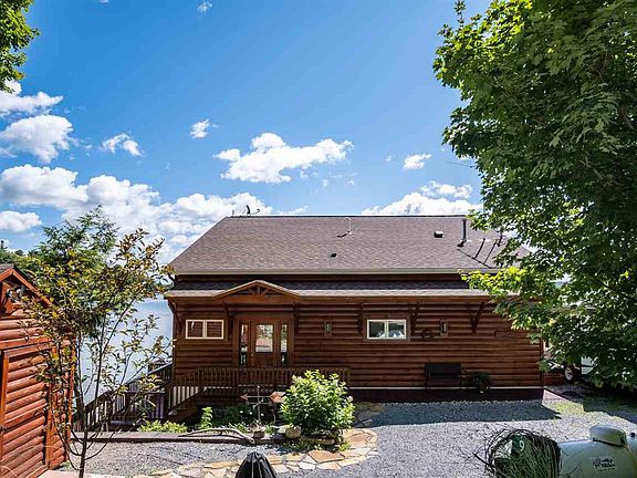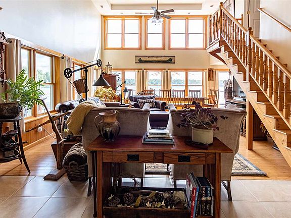 9 West Shore Rd Gouverneur NY. Built in 2007, this log-sided home sits on 100 feet of waterfront on desirable Sylvia Lake. Walking into this magnificent home, you will be greeted by an open mudroom, with storage on the right. The large windows allow for views of the lake from any angle of the house! The open concept first floor contains a spacious living room with cathedral ceilings, newly added modern half bath, dining room, white and bright kitchen, and a master suite! The master contains an attached full bath w/laundry, and a walk-in closet w/ built in storage! Walk up the stairs and find 3 bedrooms, a full bath and another storage area! EASY ACCESS to the lake, Radiant in-floor heat, central AC, beautiful wooden floors, this home has it all! Outside you will find beautiful landscaping, with natural stone and many different types of perennial flowers. For additional storage there is a nice size shed. Call it camp or call it your year round home, all the work has been done for you for you, all you need to do is move in and enjoy lake life!