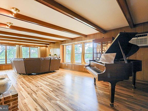 Set against majestic oaks, this leafy suburban oasis has earned the name Tall Oaks 9. This Mid century modern all-brick ranch home on nearly 2 acres is conveniently located to so much yet tucked up on the hill. Enter the foyer to the large living and dining rooms filled with light from the gorgeous wall of windows. Fabulous kitchen complete with island range and wall ovens, granite counters, and breakfast area with adjacent breezy balcony to sit back and relax while you enjoy your morning coffee and beautiful view. Convenient pocket door provides seclusion leading to three main level bedrooms with an abundance of closet space. Beautiful owner's suite with your own private bathroom and open walk-in closet. Finished lower level with wood burning fireplace, retro wet bar, storage/utility room, media room/office, and a huge woodshop for the woodworking hobby enthusiast with all tools remaining. Walkout from the basement to the extensive patio which is perfect for entertaining.