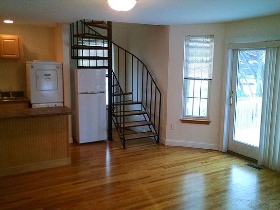 Sunny two rooms studio on two levels in Newton Highlands. Beautiful hardwood floors both up and downstairs. This apartment is situated where Centre St meets rte 9 East. There is a private deck off the living room, which is open to the kitchen. A spiral staircase leads up to the bedroom area which has generous closet space and a full bathroom with tub. The apartment has driveway parking for two cars, c/a and some yard space. A well behaved pet under 30lbs with references will be considered. Absolutely NO Smoking! First month rent, full Security and one month Broker fee. Laundry in Unit and approx 1/4 mile to the Green line and shops/taverns in Newton Highlands.
