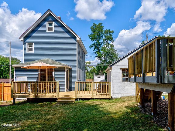 Well maintained freshly painted 3 bedroom, 1 1/2 bath with many desirable features, renovated Eat-in kitchen with all ss appliances and island, living room/dining area combo with high ceilings, hardwood/laminate floors throughout, finished area in full basement with new laminate flooring and both interior and exterior access, walk-up full attic perfect for additional storage or potential for more living space, new outside door leading into basement, new back deck, new stockade and vinyl backyard fence, above ground heated pool with new deck, brand new vinyl siding & windows in the large 2 car detached garage with storage above plus additional off street parking, all in a convenient location and close to everything. Woodlawn Elementary and Central Park Middle School.