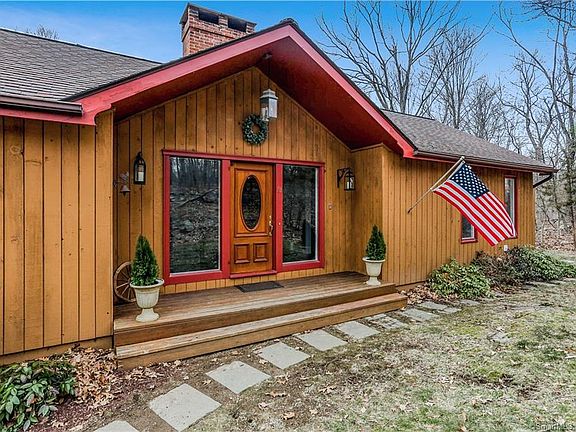 This contemporary ranch is single floor living at its best. Privately located on 2.6 acres and within minutes of Putnam and Huntington State Parks. The center of this home is clearly denoted by its vaulted ceiling that encompasses both the foyer and the Great Room. Large windows at the entry and a large slider with side lights allow plenty of light into this section of the home. The brick fireplace provides separation between the foyer and the Grand Room. To the right is a spectacular updated kitchen with a 48" 6-burner Wolf stove, over sized GE Monogram refrigerator, limestone counter tops and a large center island. Separate laundry room and a walk-in pantry with plenty of storage. The bedroom wing has an en-suite Master Bedroom with a slider out to a private deck and 2 bedrooms and an additional full bathroom. Large deck off the Great Room is a great entertainment area that has a propane hookup for the grill, outdoor shower, utility shed and vegetable garden.