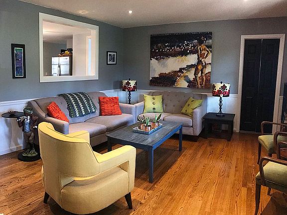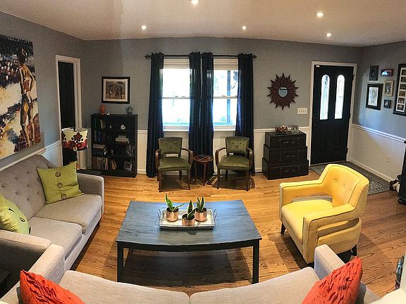 Beautifully renovated rancher, including new kitchen, bathrooms, upgraded electric panel, recessed LED lighting through out, all new plumbing, water heater, and refinished hardwood floors. Private office in partially finished basement, perfect for working from home. Enjoy the privacy of a wooded backyard with the convenience of walking into town. Completely move-in ready!