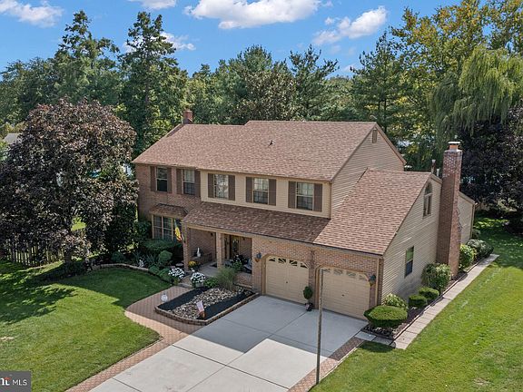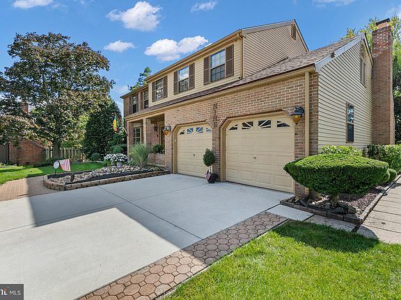 Cul-De-Sac living in highly desirable Mount Laurel. The Beauty and Pride of Ownership truly show in this 4 Bedroom, 2.5 Bath, Brick Colonial on one of Brettonwood's largest property lines. Enter up the 4 Car+ driveway surrounded with extensive landscaping and hardscaping up to the front porch. Through over-sized, custom wood doors, you enter into the hallway with accent tile flooring, leading you into a spacious living room with beautiful thick-plank hardwood floors and a large bow-window. The living room opens to a formal dining room, perfect for hosting large dinner parties. The Eat-In Kitchen features Marble Countertops, Stainless Steel Appliances, tile backsplash, a garden window overlooking the spacious back yard, room for a table and chairs and a 3-Seat Breakfast-Bar. The kitchen is open directly to the massive family room with addition that needs to be seen in person to see how truly large it is. The family room is highlighted by exposed beams and a unique, oversized brick fireplace with hearth and mantle (fireplace has a gas insert but could easily be converted back into wood burning). A large, roofed patio extends behind the home and overlooks the scenic backyard perfect for a play area or a pool. Back in the home, the main level also features a stylish half bath, a separate laundry room and a large 2-Car Garage with plenty of space for storage. The basement level of the home is finished off for additional live space and would make an excellent game room, gym, office, etc. The basement was designed with storage in mind and features two separate storage areas. The upstairs level of the home features 4 spacious bedrooms, and 2 full baths highlighted by the giant master bedroom that features 3 closets, a master bath and a rarely seen jacuzzi suite with elevated jet tub, skylights, oversized window and a separate sink and water heater. Roof was installed in August of 2022, Driveway in 2020. The sellers are the original owners and the pride in ownership and attention to detail are evident in every room. Come fall in love with this home!