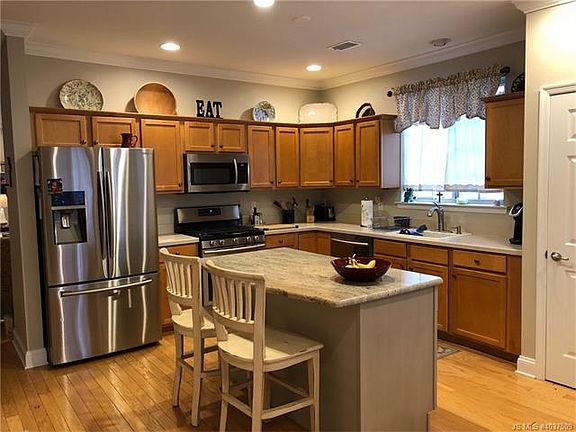 - Interior: Bedroom on 1st Floor, Decorative Mouldin, Open Floor Plan, Recessed Lights, Kitchen Island, Attic - Pull Down, Blinds/ Shades